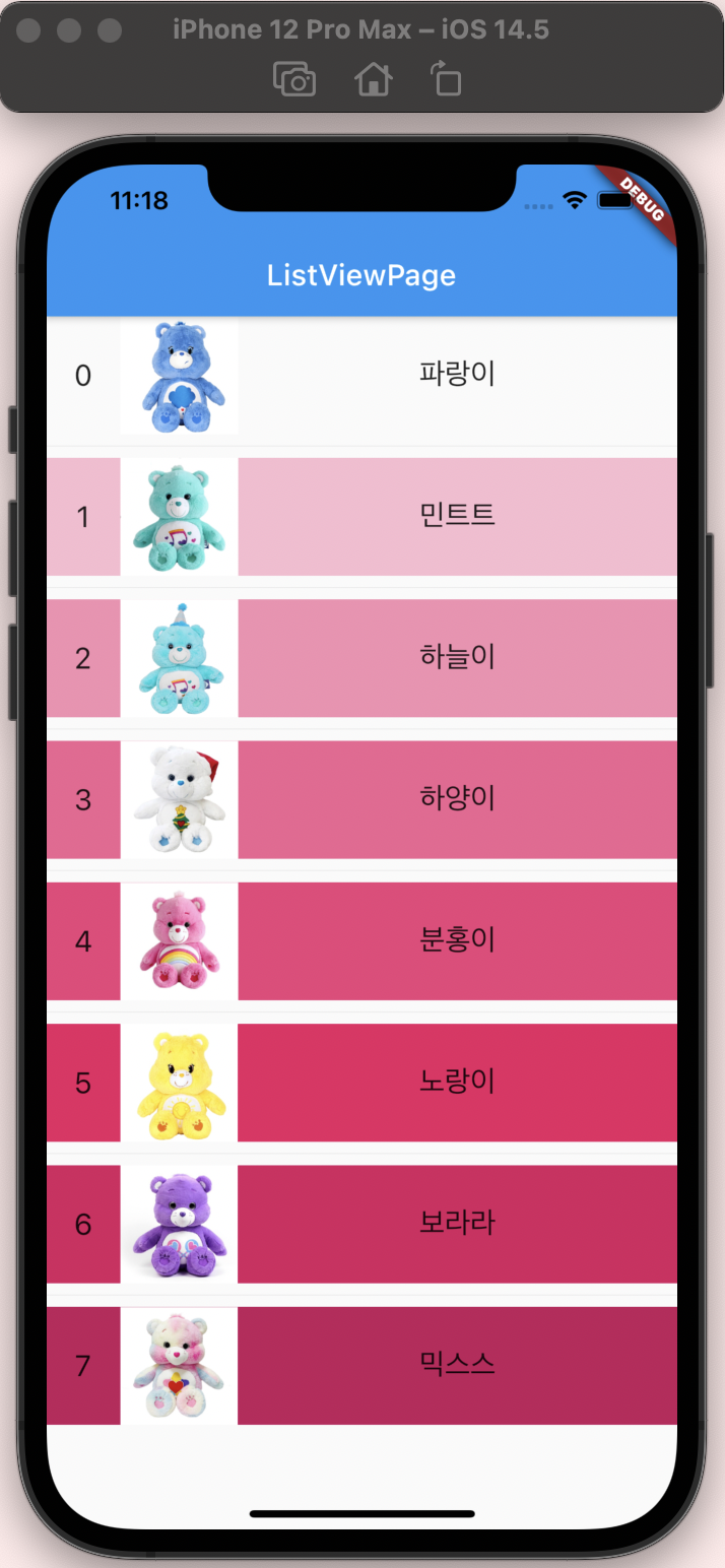 카드(Card) 위젯 아이템 등에 사용하는 카드 형태의 위젯(Widget). 보통 리스트뷰(ListView)나 그리드뷰(GridView) 와 같은 위젯에 감싸서 사용합니다. 1. CardPage.dart Card( child: ... ), 이 형태를 사용합니다. shape: RoundedRectangleBorder( //모서리를 둥글게 하기 위해 사용 borderRadius: BorderRadius.circular(16.0), ), elevation: 4.0, //그림자의 깊이를 설정 import 'package:flutter/material.dart'; class CardPage extends StatefulWidget { const CardPage({Key? key}) : super(key: key)..